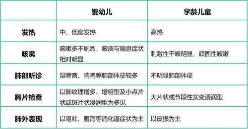 正常情况下,不同年龄段MPP患儿的临床表现有不同的特点。下面总结一下婴儿和学龄儿童MPP常见的临床表现。